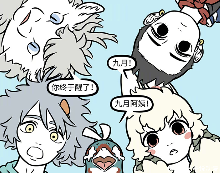 《非人哉》漫画第1146话更新,九月完成所有缘线,紫微大帝送她回原本世界。敖烈、哪吒、哮天、阿毛和小玉等她醒来。九月的额头处有伤口,小玉帮她处理。一切都恢复到了原点,九月又回到了伙伴们的身边。